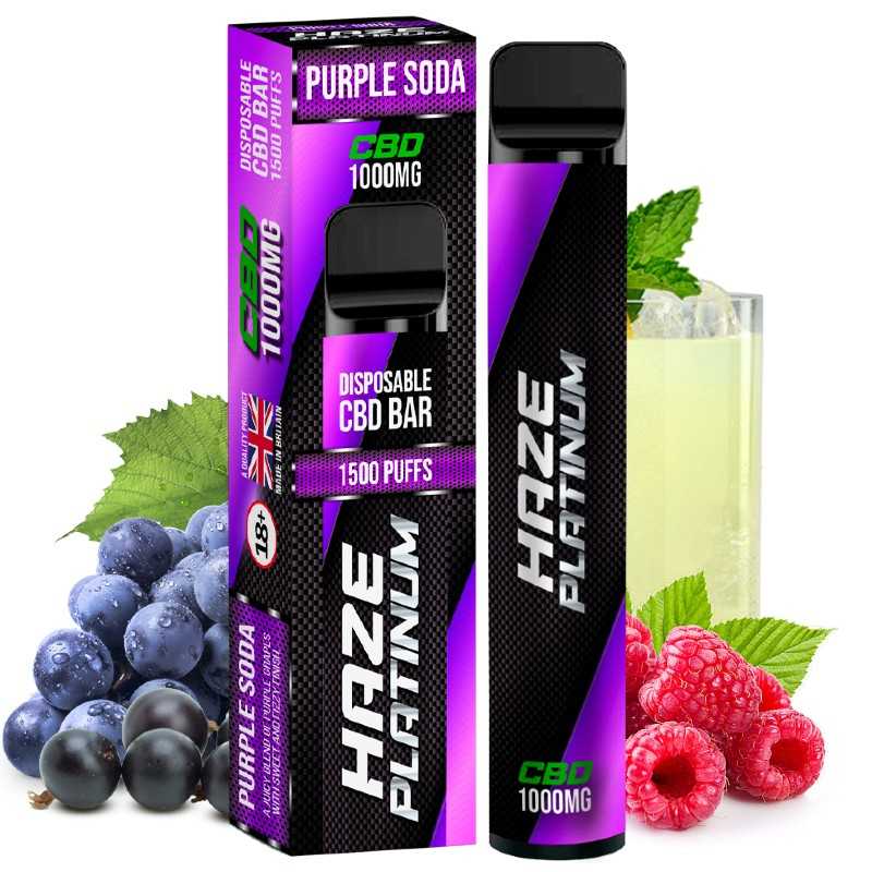 Vape Pen Haze Bar CBD 1000MG 1500Puffs Purple Soda